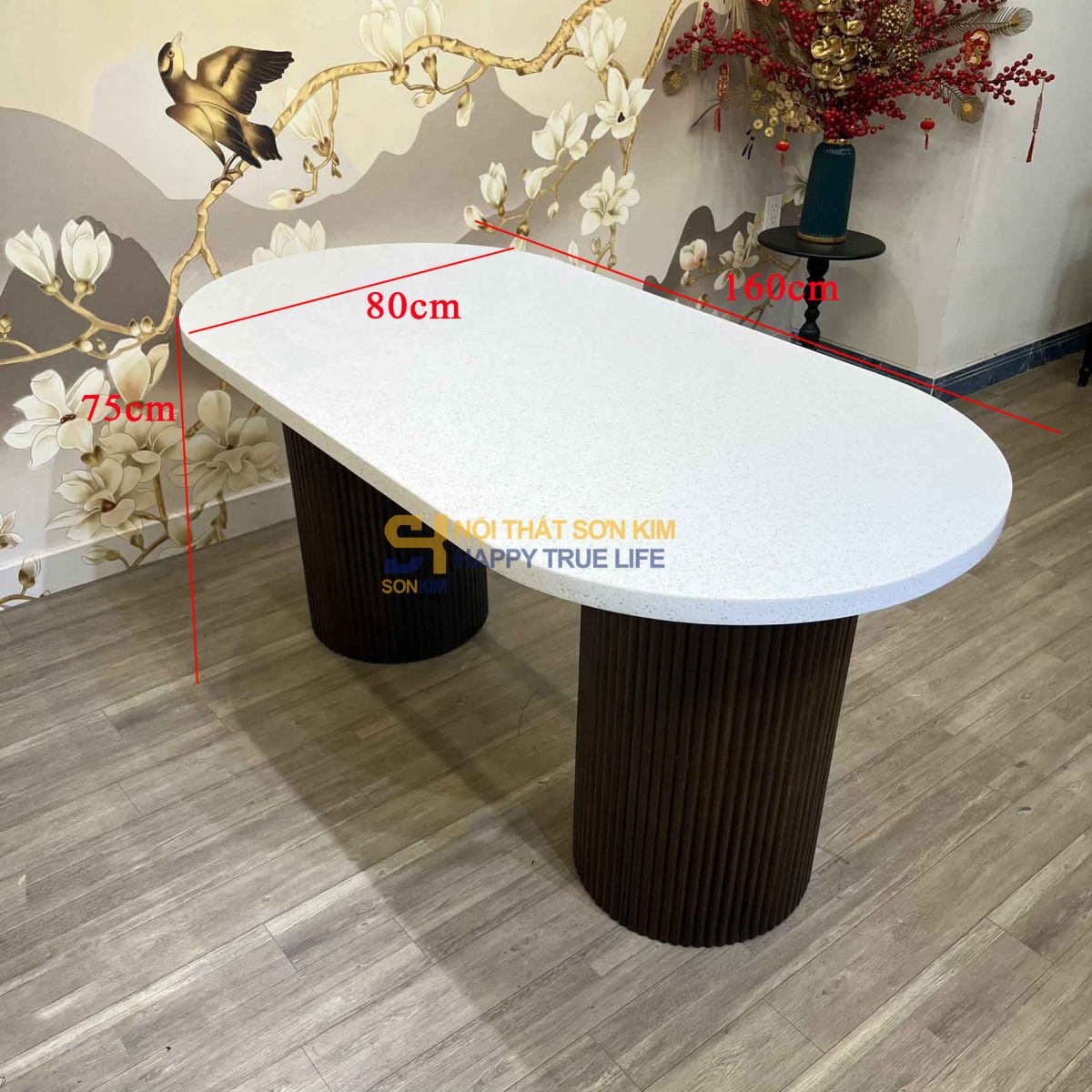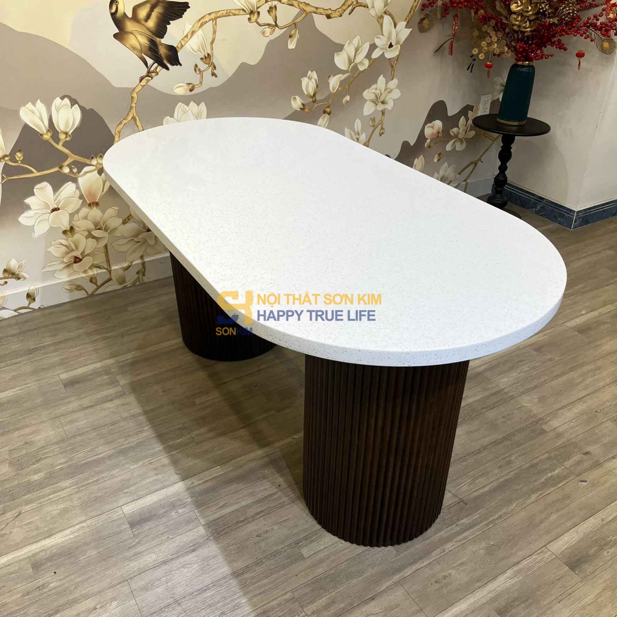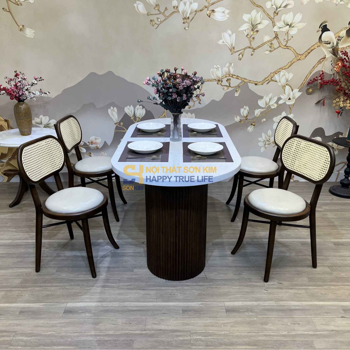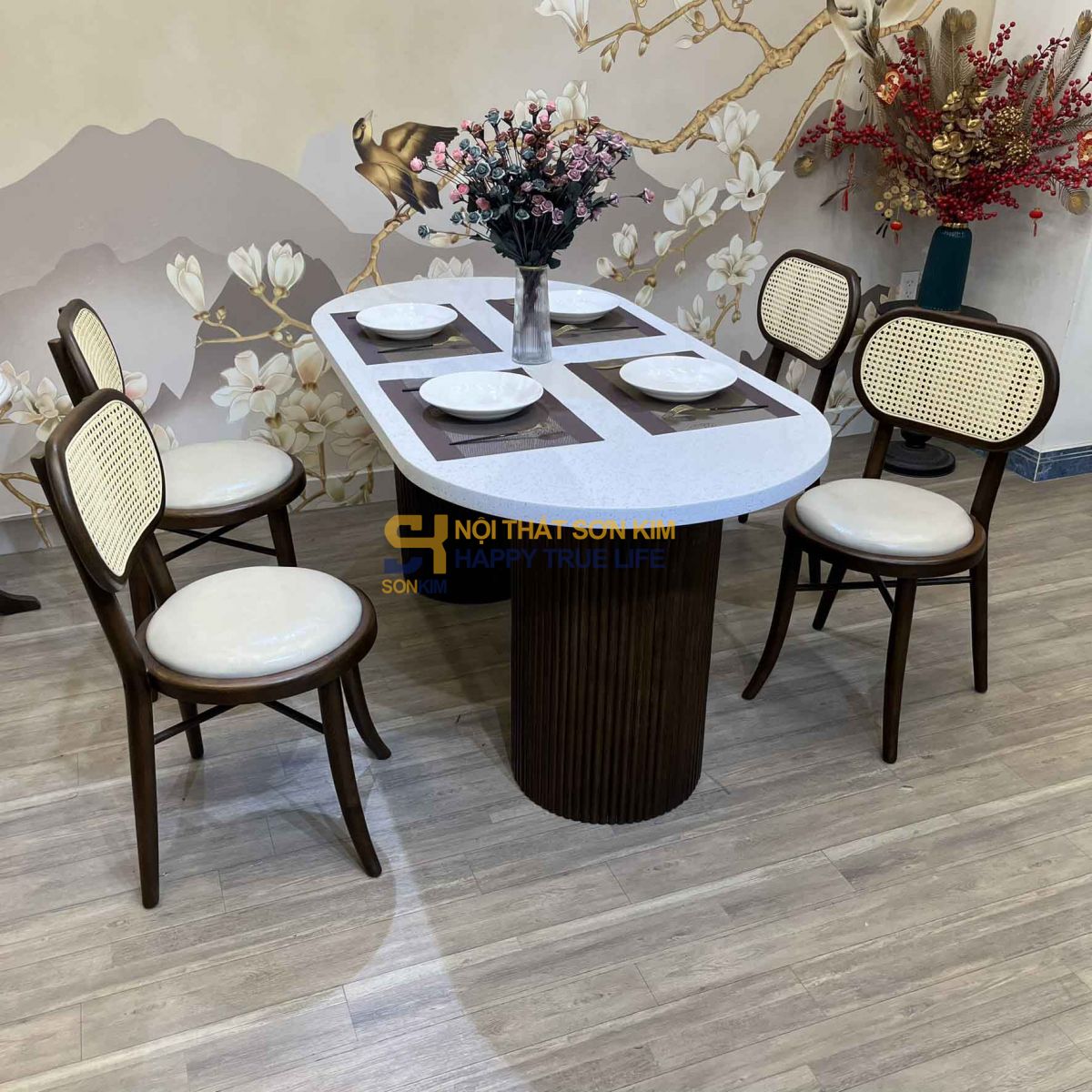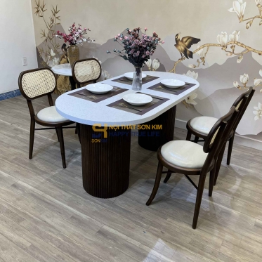BỘ BÀN GHẾ ĂN GỖ TẦN BÌ – MẶT GẠCH TERRAZZO TRẮNG HIỆN ĐẠI