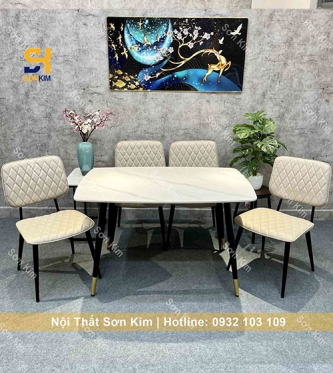 Ghế ăn trong bộ sản phẩm này được thiết kế với kiểu dáng hiện đại và đẳng cấp. Chất liệu bọc ghế là simili cao cấp, giúp tăng độ bền cho sản phẩm và đem lại cảm giác thoải mái khi ngồi. Đặc biệt, ghế được thiết kế với nệm êm ái và đàn hồi tốt, giúp tạo sự thoải mái và thư giãn cho người sử dụng.