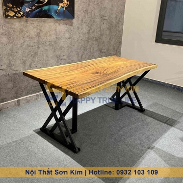 Khám Phá Sự Hoàn Hảo của Bàn Ăn Gỗ Me Tây Nguyên Tấm BC70 - Kết Hợp Tinh Tế giữa Gỗ Me Tây Nguyên Tấm và Chân Sắt Sơn Tĩnh Điện. Phù Hợp Cho Không Gian Café, Nhà Hàng, và Khách Sạn.