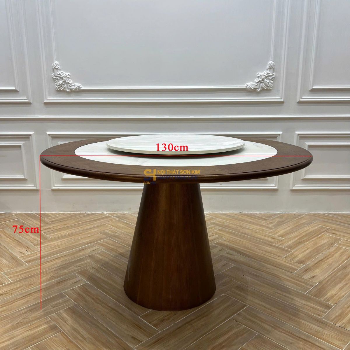 Kích thước: Đường kính D130cm – Chiều cao H75cm, phù hợp cho 4–6 người sử dụng.