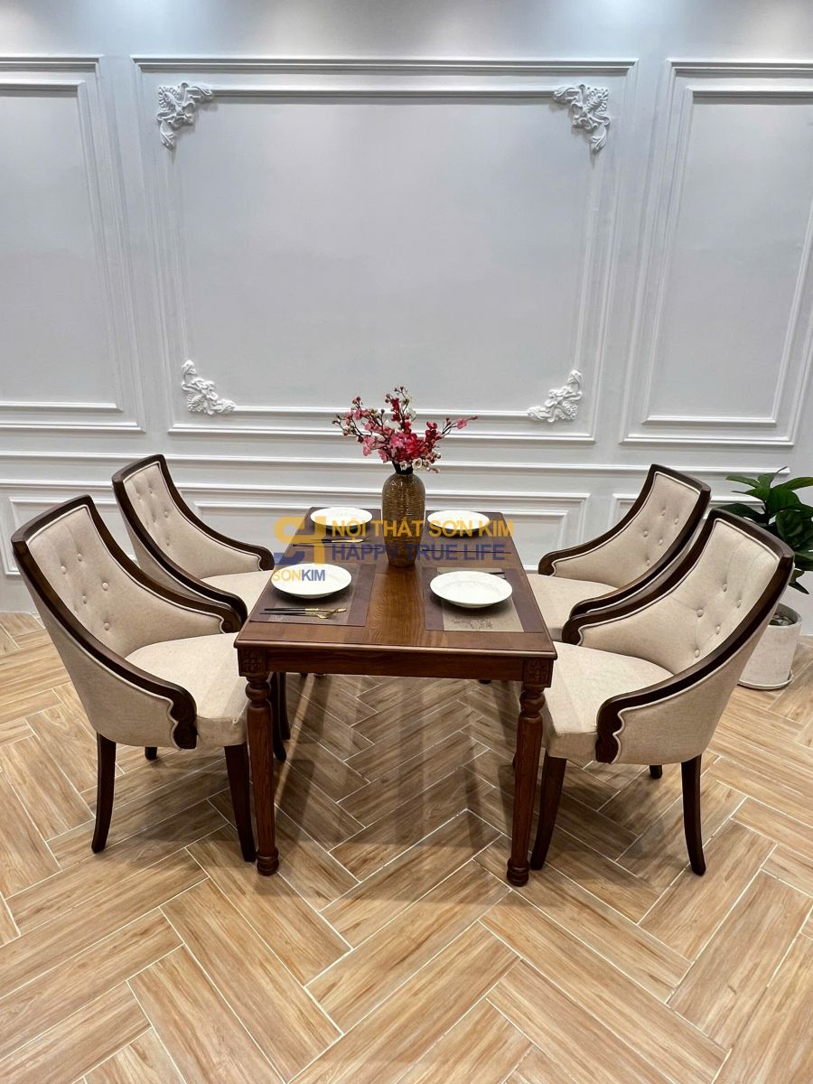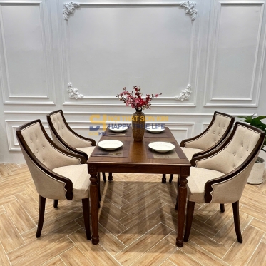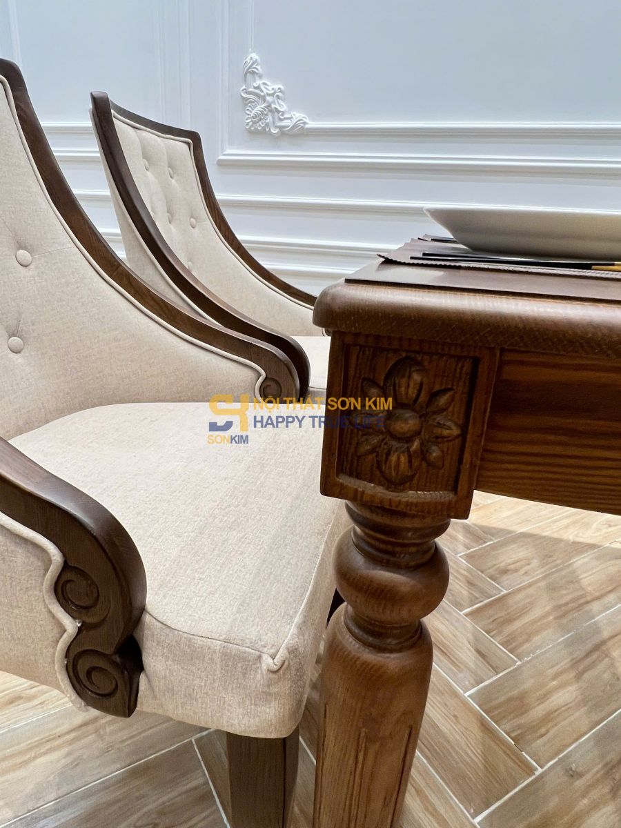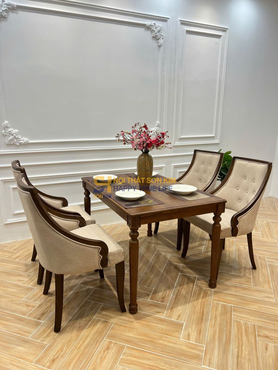 Bộ bàn ăn Louis Tần Bì & Ghế Amber Gỗ Màu Nâu BGA127