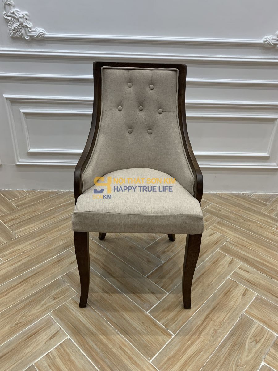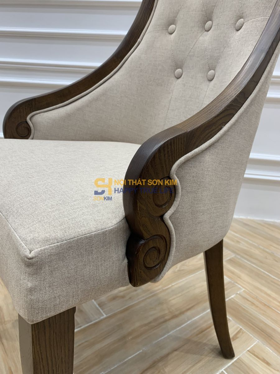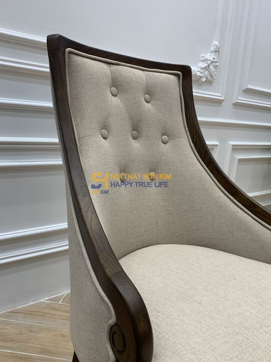 - Nệm bọc vải nhung màu kem trầm ấm, mềm mại và êm ái khi ngồi.
