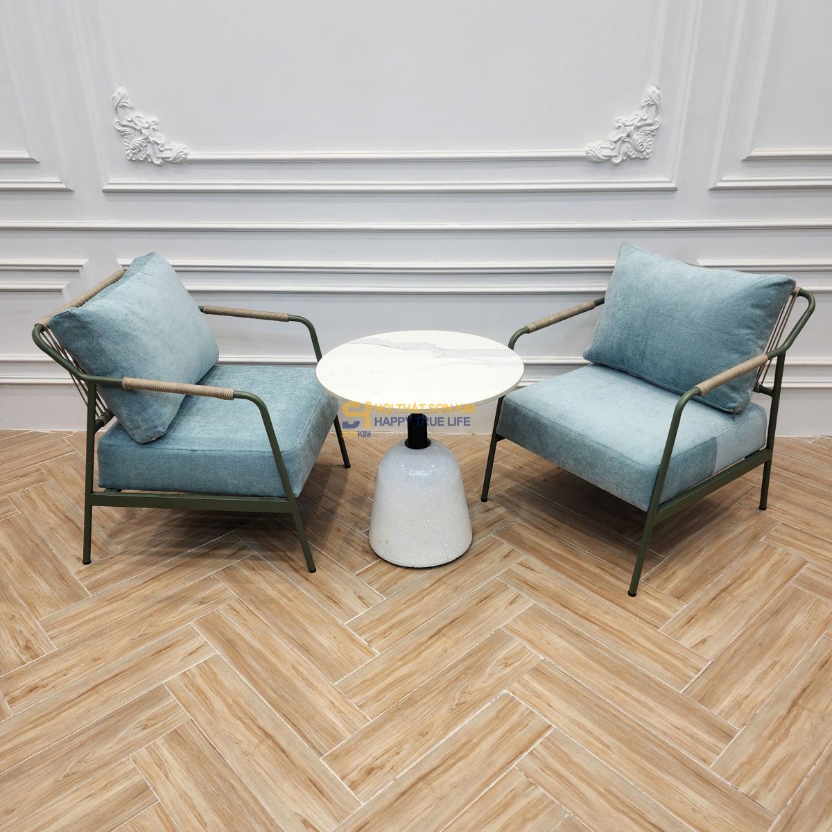 Nệm ngồi và tựa lưng tone xanh da trời dịu mắt, nổi bật và hài hòa với màu khung Mint, tạo nên tổng thể trẻ trung, tinh khiết và dễ phối trong mọi concept décor.