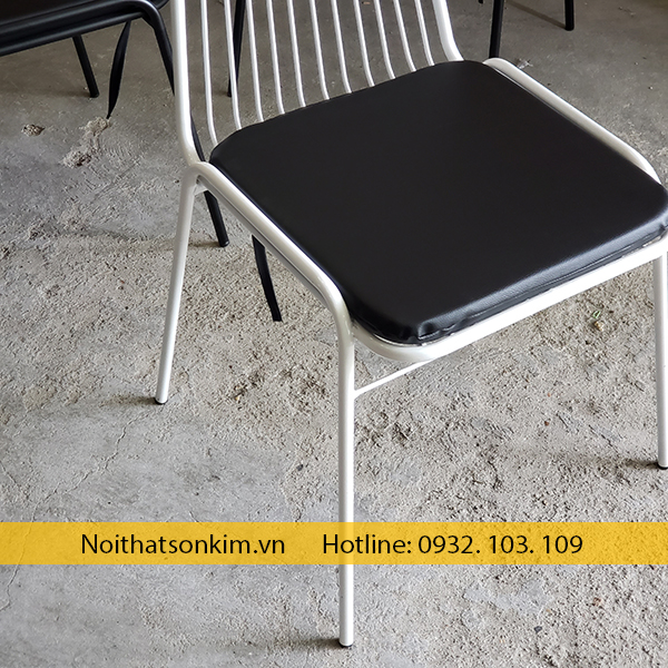 Chất liệu bao gồm: Khung sắt vuông, công nghệ sơn tỉnh điện, chân ghế gỗ cao cấp, nệm bọc simili